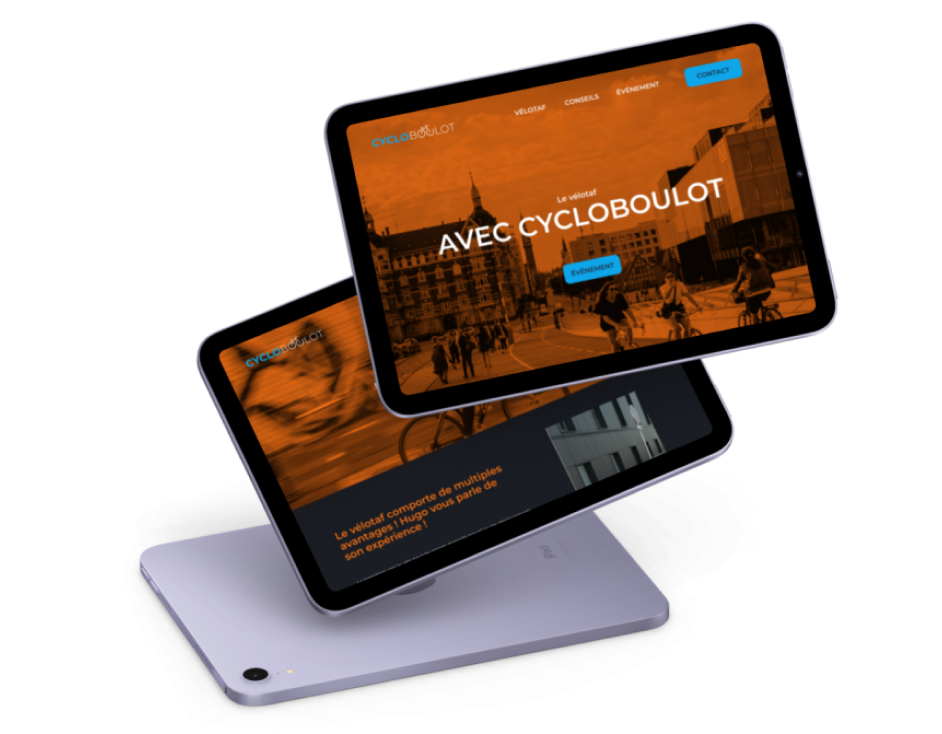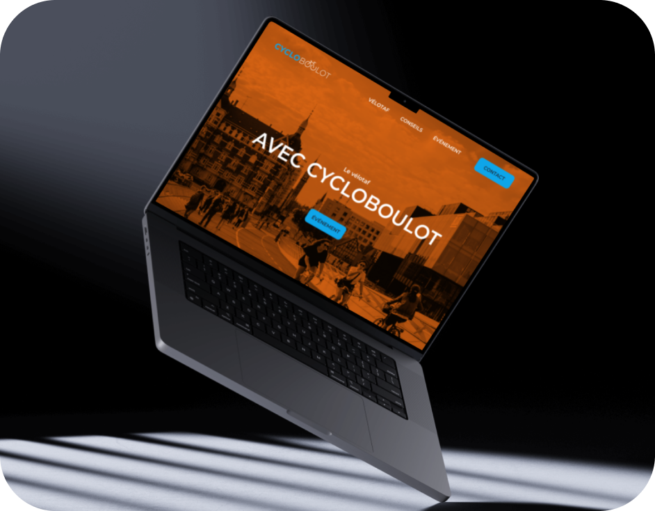 Ma contribution s’est principalement concentrée sur la création d’un site WordPress dynamique, aux couleurs orange et bleu, symbolisant le sport, le bien-être, la stabilité et le dynamisme. Cycloboulot propose des conseils et des ressources pour encourager les utilisateurs à pratiquer le vélotaf en toute sécurité. Nous avons également organisé un événement promotionnel dans le cadre de la formation, visant à motiver les participants à adopter cette pratique.